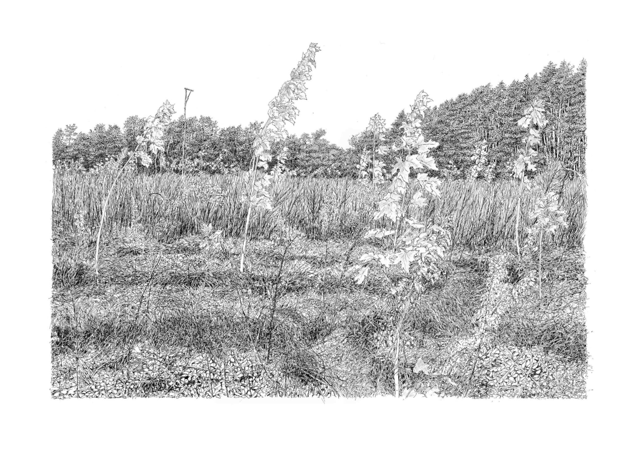 Plus limitierte Edition der Federzeichnung „Moor“ des Künstlers Rüdiger Tillmann