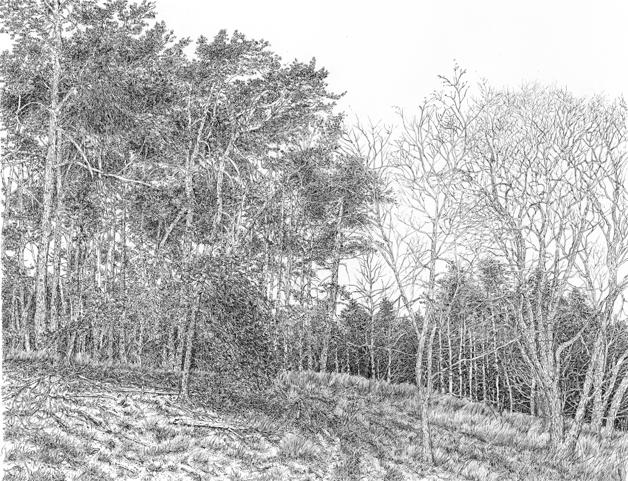 Plus limitierte Edition der Federzeichnung „Unter Bäumen“ des Künstlers Rüdiger Tillmann